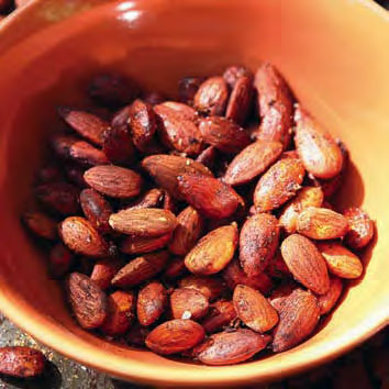 * 300g almonds with skins *2 tbsp olive oil * 2 tsp spicy smoked paprika * 2 tsp flaked sea salt