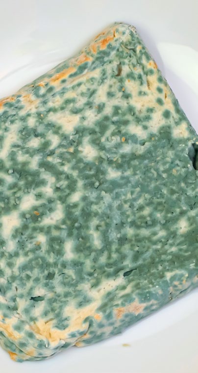You might have an allergic reaction or breathing problems if you eat it. Cutting out the mould might not work, as it sends roots through soft food like bread. AE
