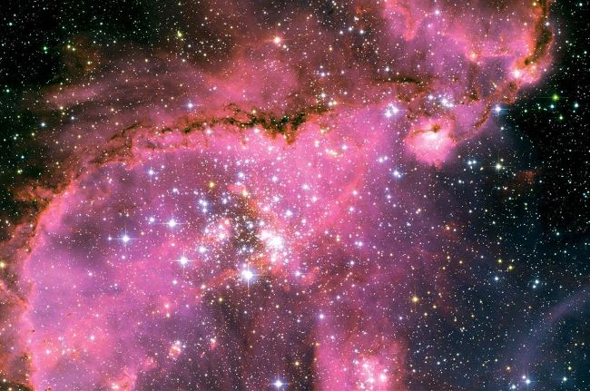 Around 210,000 light years from Earth is one of the most spectacular star-forming regions in space. This image shows the heart of the Small Magellanic Cloud, home to a star cluster called NGC 346. This celestial gathering emits vast amounts of radiation, creating these dramatic clouds of cosmic dust and gas. Dozens of the brightest stars in the cluster are blue, young, hot stars with a large mass.