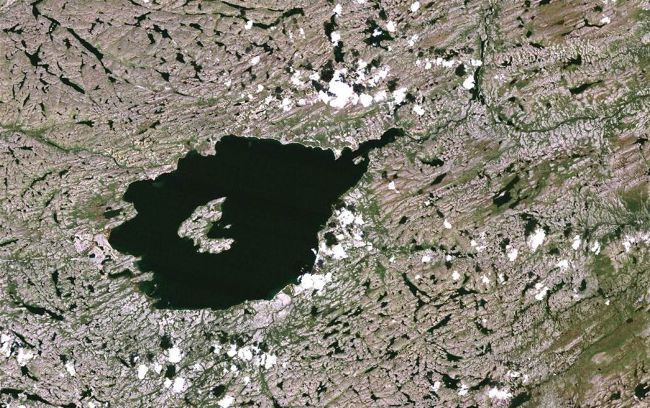 The rock was found within the Mistastin impact crater in Labrador, Canada, shown here in this satellite image