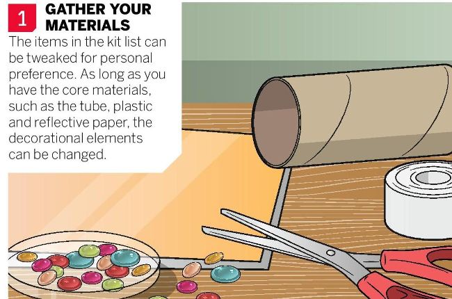 The items in the kit list can be tweaked for personal preference. As long as you have the core materials, such as the tube, plastic and reflective paper, the decorational elements can be changed.