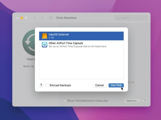 Now go to System Preferences>Time Machine and click on the ‘Select Backup Disk’ option. Your external drive should be listed, so click on it and then choose ‘Use Disk’.