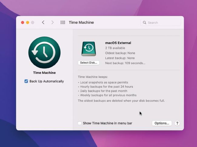 When the Time Machine disk has been selected, the ‘Back Up Automatically’ option will be ticked. Leave this on. Now wait for your Mac to back up, which may take a while.