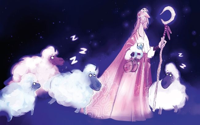 “This dreamy sandman figure guiding his flock was my take on the ‘Wandering Shepherd’ prompt for the Character Design Challenge. I loved blending softness and surrealism, and playing with a gentle atmosphere.”