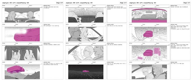 Storyboards for the canyon flying scene in NBC Peacock’s series Angelyne.