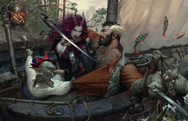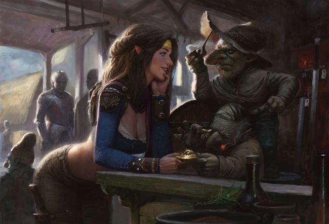 4 HAGGLE “My goal here was to illustrate a scene where the characters have a nice dynamic. It also shows the seductive persuasion of the girl and the inherent distrust of the goblins.”