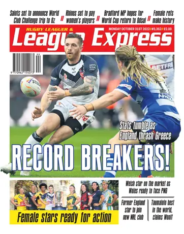 3352 The new issue of League Express reports on the all the World Cup matches played in Round 3 of the pool games and looks ahead to what might happen in the quarter-finals, with our expert columnists Garry Schofield, Jamie Peacock and Martyn Sadler. We also look ahead to the start of the Women's Rugby League World Cup and we have a full preview of the Wheelchair World Cup. We have full news from all the Super League, Championship and League 1 clubs, as well as our full coverage of the community game, while, in our latest in the Rugby League Heroes series of articles, Richard de la Riviere talks to the former Leeds great Alan Smith.