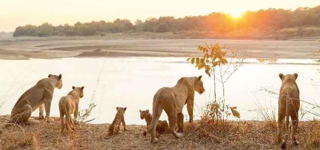 Lionesses of the Mfuwe pride with their cubs, South Luangwa National Park, Zambia