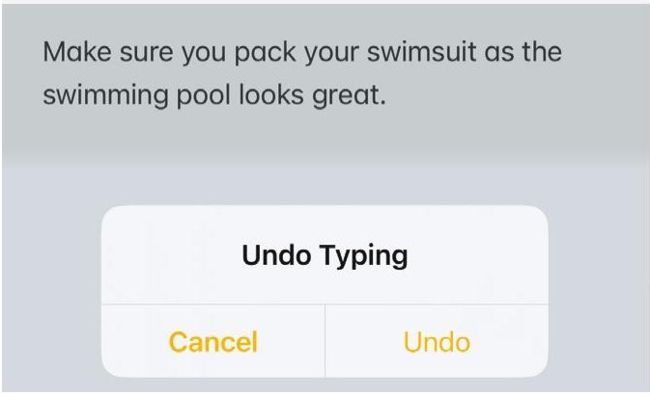 You can shake your iPhone to undo the last thing you typed. A window called ‘Undo Typing’ pops up, inviting you to Cancel or Undo. If you keep activating it accidentally, you might want to turn it off. Either way, go to Settings > Accessibility > Touch, and turn ‘Shake to Undo’ on or off.
