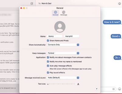 You can change the text size of messages, as well as choose whether effects and sound effects are played in Preferences.