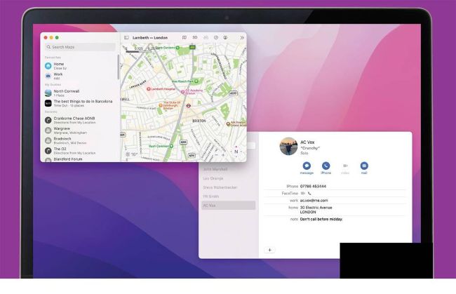 Contacts works seamlessly with other stock Mac apps, like Calendar and Maps.