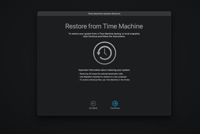 The best way to restore your Mac from a recent backup is to start it up in Recovery with the backup store connected.