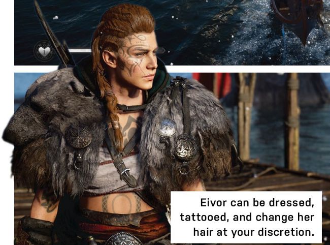 Eivor can be dressed, tattooed, and change her hair at your discretion.