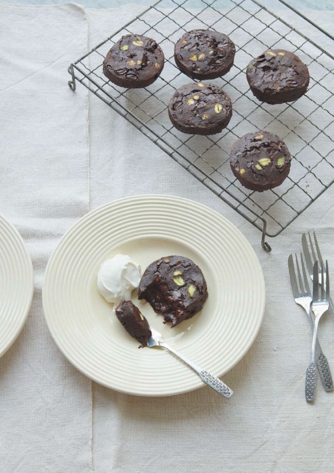 Avocado, chocolate and pistachio cookies