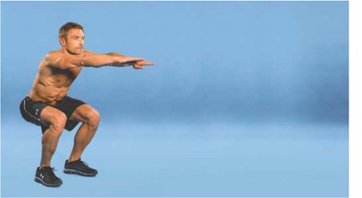 Stand with your body in a straight line from head to heels and your hands by your sides. Lower into a squat until your thighs are parallel to the floor, and hold the position. Bring your arms out in front of you for balance during each hold.