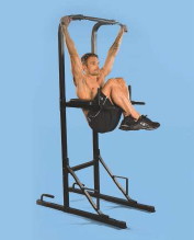 Hang from a bar with hands wider than shoulder-width apart and arms straight. Raise your knees to pec height, keeping them together. Take 3sec to lift and to lower.