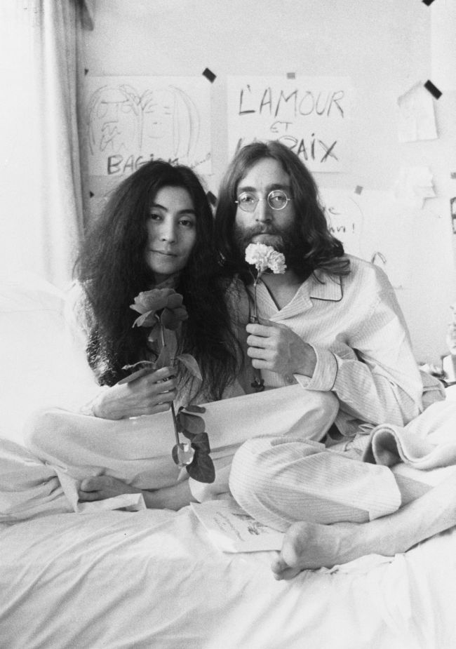 Flower power: Ono and John Lennon during their Montreal Bed-in, 1969.