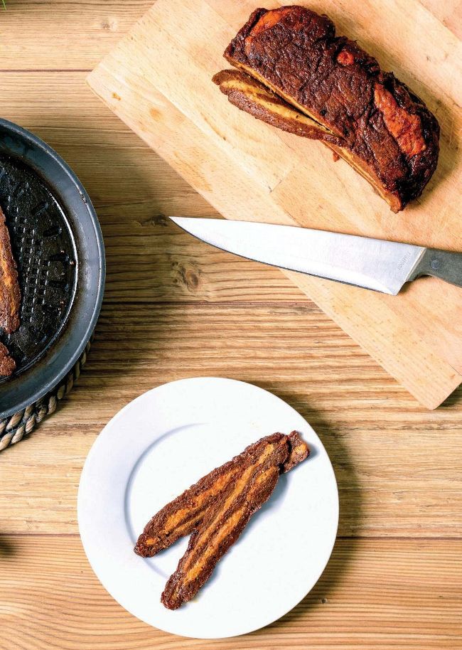 This seitan makes a great bacon alternative, as it has a smoky flavour and crisps up perfectly. Try serving it as part of a vegan full-English breakfast, or in a crisp, freshly-baked roll, for a plantbased take on a bacon butty!