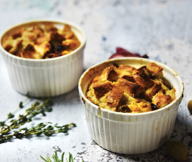 Olive, Sun-dried Tomato and Red Onion Bread Pudding