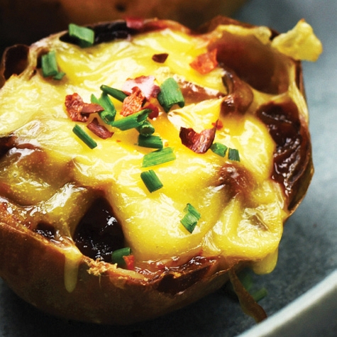 Potato Skins stuffed with Pulled BBQ Banana Peel