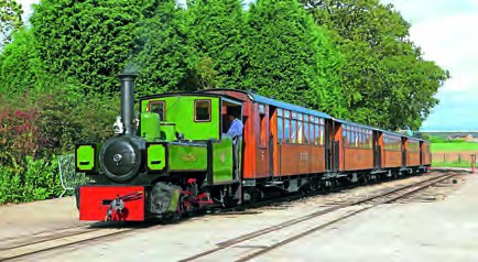 STATFOLD Barn Railway’s Hudswell Clarke P class 0-6-0T Alpha (1172/1924) pauses with a train at Oak Tree Halt on October 27, the first day of Statfold’s Halloween event. Trains ran top-and-tail every 20 minutes from Strawberry Park during the day, Hudswell Clarke 0-4-0ST Lautoka Mill No. 19 (1056/1914) being out of sight on the other end of this train.