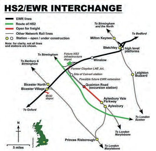 A schematic map of the lines around the HS2/EWR interface.