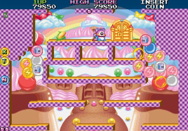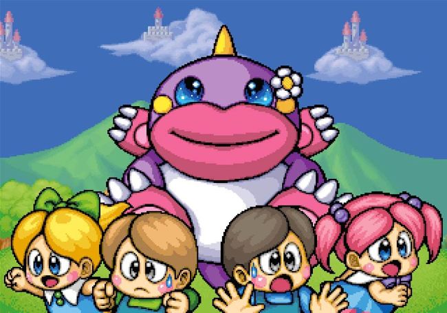 Taito’s sequel picks up years after the events of Bubble Bobble and Rainbow Islands. The children of Bub, Bob and their girlfriends are roughly the same age as their parents were when they had to venture into the Cave Of Monsters. But the son of Super Drunk, Bubble Bobble’s final boss, has also come of age, and he’s still mad about how Bub and Bob beat his dad. While Bub and