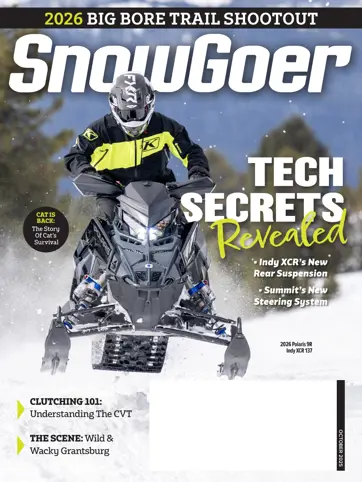 This issue includes our annual Inside Tech series, where factory designers share exclusive details on the development and execution of new-for-2026 technology. In this case, we learn about the Indy XCR’s new Long-Tail rear suspension and Summit X with Expert’s new S32 front end and Twin Link steering. Also, we conduct a shootout of natural aspirated 2026 trail sleds, celebrate Arctic Cat’s return, share CVT system details, tour the great trails around Gaylord, Michigan, and much more.