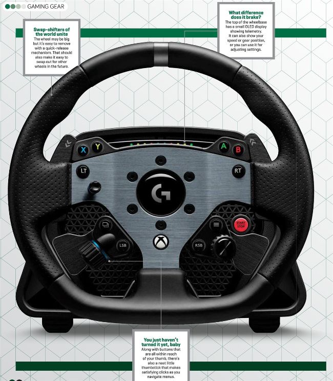 Its layout isn’t all too different from the noob-friendly G923, from the easily accessible face buttons on the wheel to the magnetic Hall-effect paddle shifters at the back. But this wheel has a slightly bigger diameter of 30cm, which does make a difference: it feels much more like you’re holding the real thing, which is precisely what you want from a pro wheel.