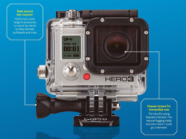 Recognising that it had garnered such a diverse audience, GoPro offered three levels of the Hero3 lineup: White, Silver and Black editions. Each had a different megapixel count and framerate, and it was the Black that led the charge with a12MP sensor capable of capturing better low-light footage and 30fps bursts of images.
