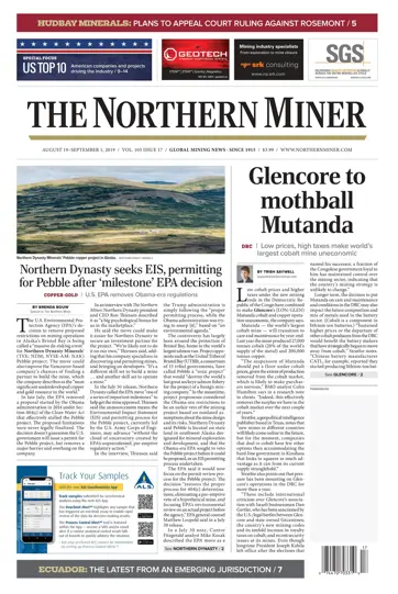 Below is a selection of articles in The Northern Miner Vol. 105 No. 17.