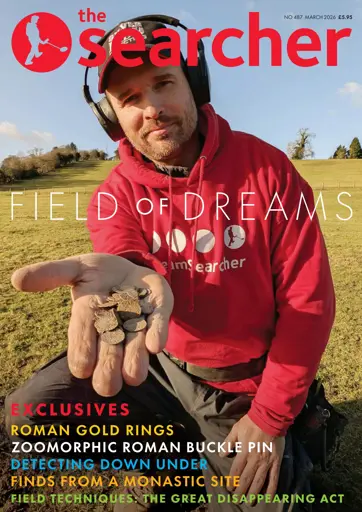 Exclusively on our cover this month is a short cross hoard discovered in Wales and discovered by Team Searcher’s Valentinas Avdejevas with help from Pete Anning and Stuart Humphries. In a ‘Field of Dreams’, Pete and Val describe how events unfolded. Other highlights include a rare 1st century Zoomorphic Roman buckle pin unearthed by Ellie Verrecchia, an early Roman gold ring with intaglio and filigree found by Peter Ryan and another Roman gold ring with intaglio recovered by Marc Porter. Jonathan Brooks shares his adventures prospecting in Australia and Mike Sinclair shares his finds from a Monastic site. Our Field Techniques piece this month is The Great Disappearing Act by DiD’s Neil Ham and Scott Sibbald and David Villaneuva concludes his series on Metal Detecting Research Secrets in ‘There’s Gold in Them Mills’.