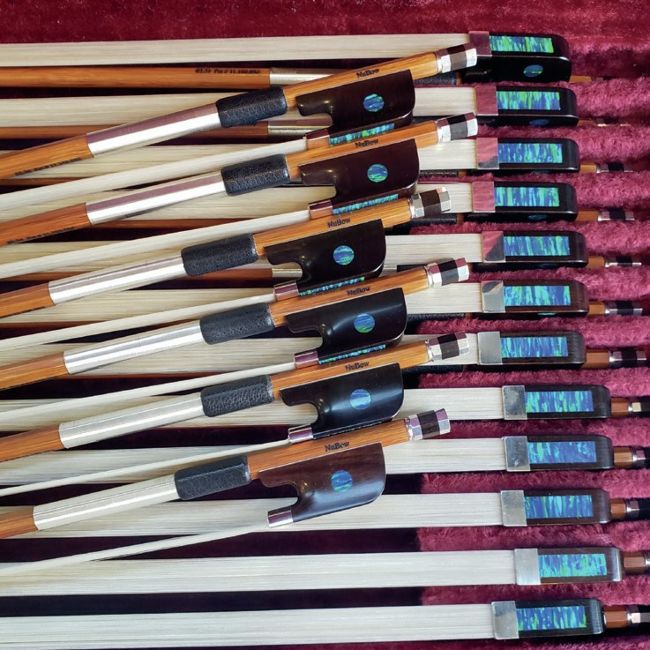 Although bamboo bows date back to the 1960s, the construction method and commercial availability of the bamboo NuBow for violin is a first for the string industry. Its stick is made entirely of bamboo, a significantly more sustainable material than pernambuco: it is farmed in large quantities and doesn’t need to be harvested in its natural environment. ‘I was following all the issues around sustainability and thought that carbon fibre bows were a great idea,’ says Rodney Mohr, bow maker and developer of the NuBow. ‘But they still have a different sound from wooden bows and I was hoping to come up with something that sounded closer to a pernambuco bow.’