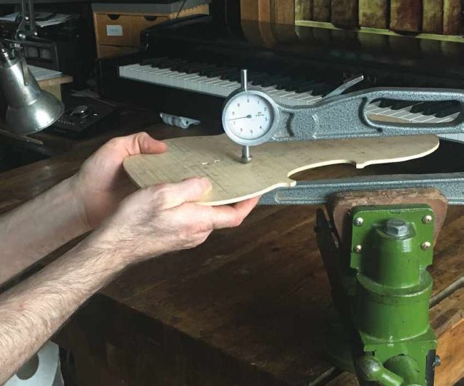 The issue I have with this approach is that you will, inevitably, have to make your plate either thicker or thinner than the original to achieve the same flexibility, as every piece of wood is unique. Once you have created a perfect copy of the outside, the plate is turned over and wood is removed from what will be the interior until you reach the desired flexibility. So you cannot simply copy the graduations (thicknesses) of another instrument as this will not result in the same degree of flexibility. What’s more, its propensity to flex will even vary within one piece of wood. If the outside remains constant and you have different graduations (thicknesses) from the instrument you are copying, you will have inadvertently changed the constructional shape, and your instrument will therefore not vibrate the same way.