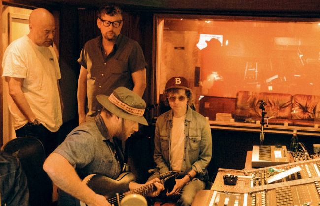 Patrick Carney, Noel Gallagher and Dan Auerbach at Toe Rag Studios in east London