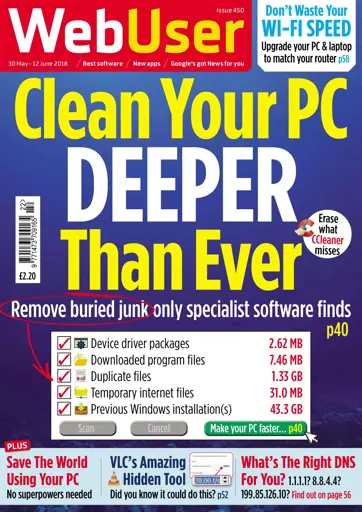 450 CLEAN YOUR PC DEEPER THAN EVER Go beyond CCleaner to remove gigabytes of PC junk you never even realised was there. Robert Irvine reveals the most effective new ways to reclaim space and speed up your system.