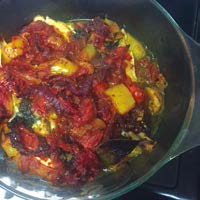 Louisa MulledWine @louisamead @Womensrunninguk #wrchallenge baked sea bream with lots of onion/garlic/pepper/ toms and potatoes