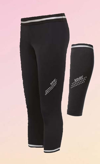Not like any other capris we have run in this year. The silicone grippers at the waist and hem keep your kit in place without annoying you. They have a comfy low waist and the fit is like a second skin; the luxurious French/Italian fabric feels divine. The compression calf guards are also amazing due to the grippers, plus they’re easy to get on and off.