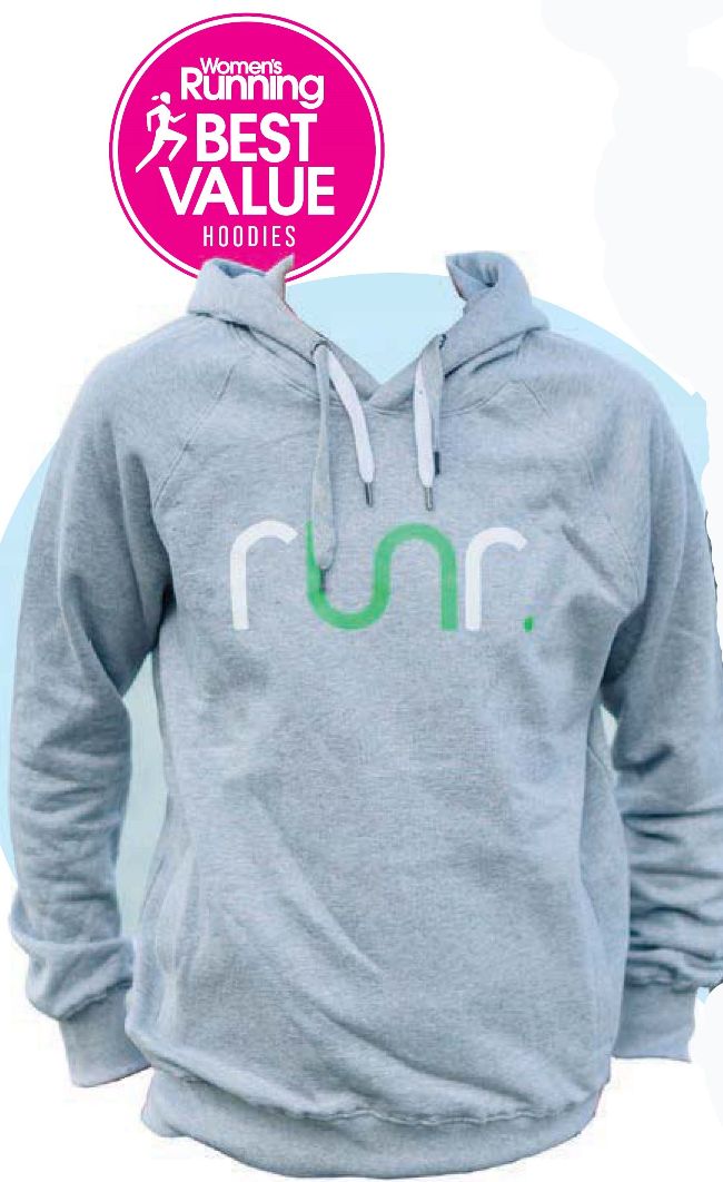 This is definitely going to do the job on those frosty mornings when you’re heading out to train or to race, as there is a soft, thick internal fleece lining to this hoodie, which is 100 per cent organic cotton. The arms are long enough for the sleeves to cover your hands during your warm-up, though thumb holes would make this item even better than it already is. It’s easy to pull on and off and the neck sits nicely. You also get the distinctive runr logo and double drawstrings that give it a quality feel and design. The front pockets are both large, and there’s a handy hole for your headphones in the left one. I tested the grey but there are many other colours available, so you’ll easily find one to suit your style, and it’s good value for money too. We’re impressed with the size range too, which is more inclusive than many larger brands.