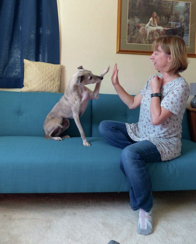 There are plenty of things you can teach your dog from your sofa such as a high five.