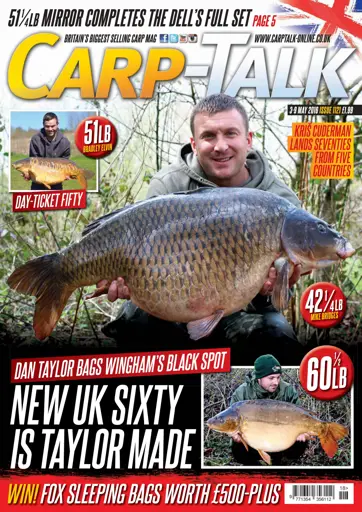1121 The latest issue of Carp-Talk (issue 1121) is available to download now! The standout catch this week’s Dan Taylor’s capture of Black Spot from Wingham at 60½lb, the fourth different UK sixty caught this year. We’ve also got fifties from the Dell, Elphicks and Fryerning, plus loads of other big UK carp. We also speak to Slovenian ace Kristof Cuderman, who has become the first angler in history to catch 70lb-plus carp from five different countries. Kev Grout recalls his historic third consecutive UK Carp Cup victory, and Steve Metcalfe takes on a daunting new venue. Steve Briggs gets a golden lesson in carp behaviour at Serrerie in France, and Mat Woods explains his own ‘scratching mix’. Products from Navitas, Trakker, Fox, Taska, DNA Baits, Avid Carp, Korda, Spotted Fin and ESP, the CC Moore monthly winners around announced, and there is £500-plus worth of Fox ERS Sleeping Bags to give away.