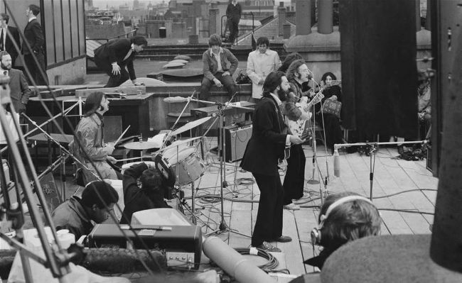 The Beatles make their last live appearance on the roof of the Apple Corps building at 3 Savile Row, 30 January 1969
