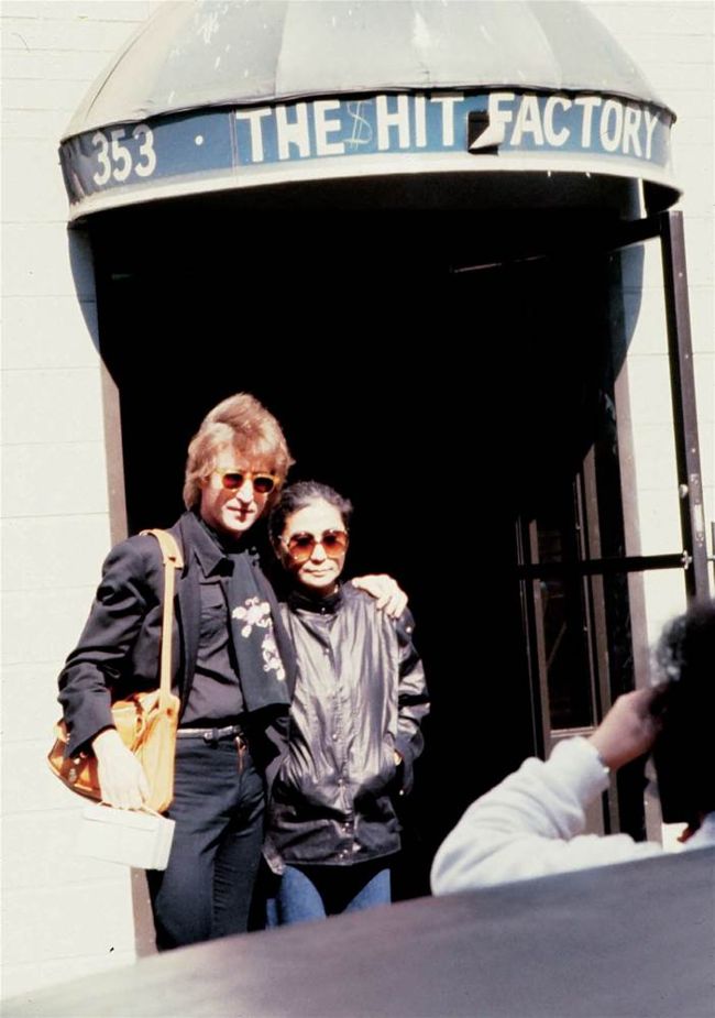 John Lennon and Yoko Ono obligingly pose for fans outside a New York recording studio, September 1980