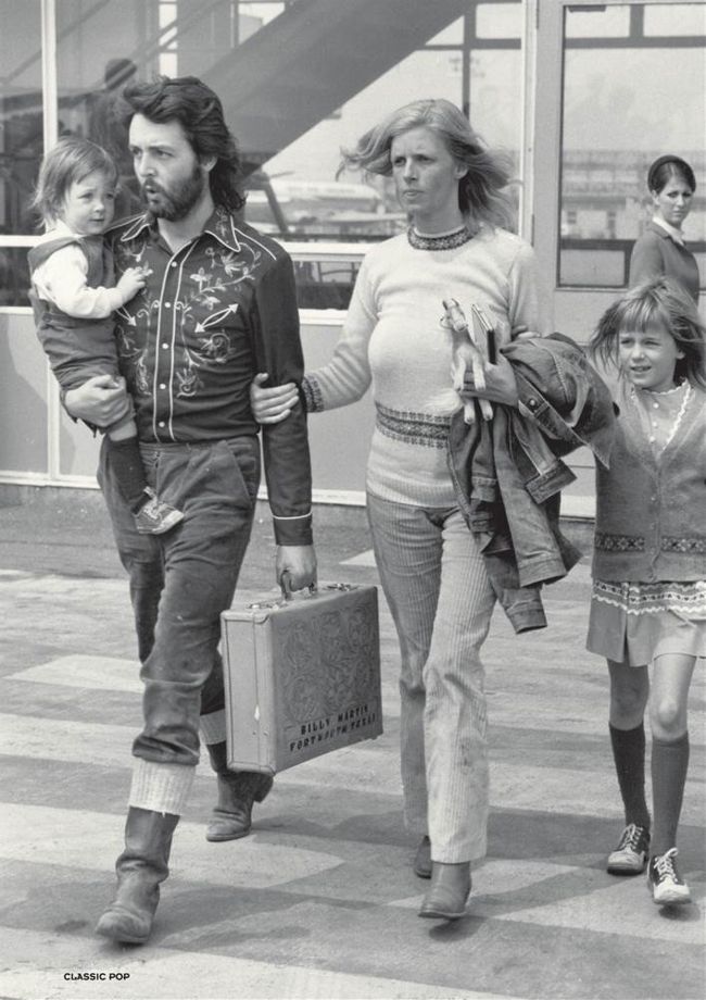 Paul holds daughter Mary at Gatwick Airport as the family travel to Copenhagen, May 1971