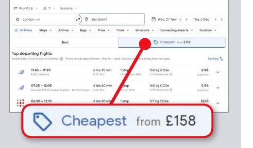 Google has added a new ‘Cheapest’ option (pictured below) to its results when searching for flights at www. google.com/flights. It says this is for travellers who are “willing to give up some convenience for the best deal”, such as flying back to a different airport that’s in the same city you departed from. Read more at www.snipca. com/52492.