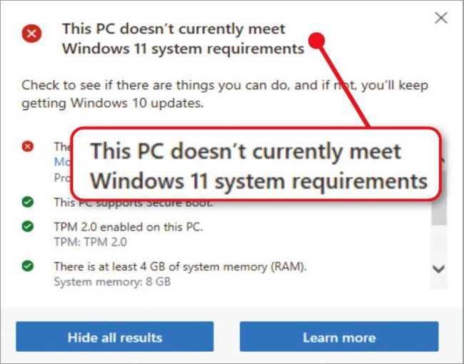 At the end of last year, online reports suggested that Microsoft had relaxed the upgrade requirements for Windows 11, but this was swiftly denied (see www. snipca.com/53562). If you try to install the operating system on a PC that doesn’t meet the minimum requirements, the installer will refuse to continue, just as it did before.