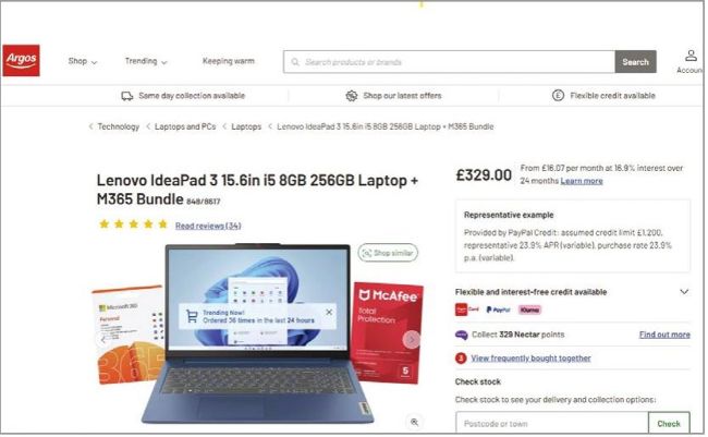 Q On 26 January, I ordered a Lenovo 15.6 laptop from Argos (pictured).
