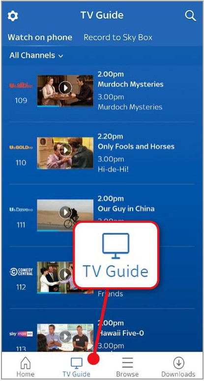 Sky customers should download the Sky Go app (www.snipca.com/54990), which is included with all Sky subscriptions and also available for Windows. Tap its TV Guide tab (see screenshot above) to stream what’s on now, or tap Browse to play shows on-demand.