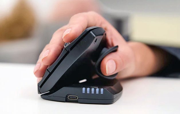 This wireless ergonomic mouse has a unique split-folding, adjustable design that lets you set the exact angle for your wrist. With a range between 35 and 70 degrees, it lets you start with a flatter angle and gradually increase it — ideal if you’re transitioning from a traditional mouse. The hinge mechanism for adjusting this angle can be quite stiff, but it remains stable while in place, and it doesn’t wobble.