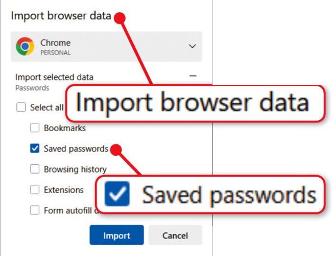 Passwords you import to your browser won’t update automatically